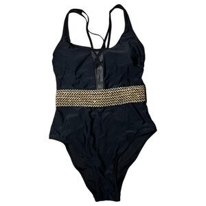 Cupshe One Piece Mesh Tummy Control Black Swimsuit Size M