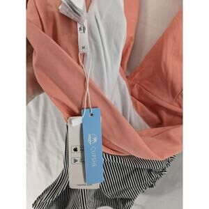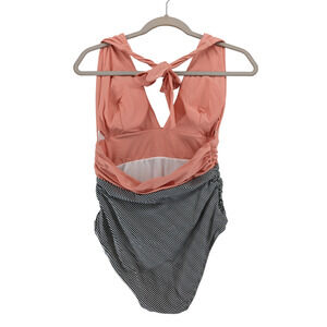 Cupshe One Piece Swimsuit M Pink Halter Plunging Neck Ruched Striped Bottom Swim