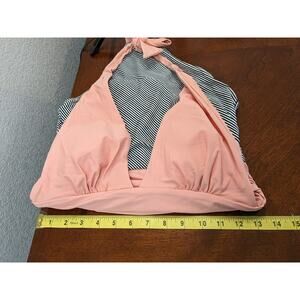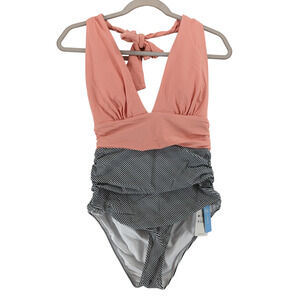 Cupshe One Piece Swimsuit M Pink Halter Plunging Neck Ruched Striped Bottom Swim