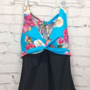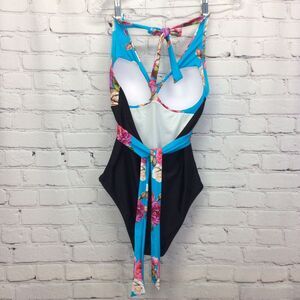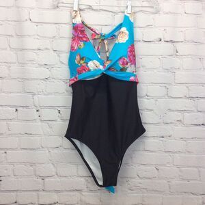 Cupshe One Piece Swimsuit Women's Size S Floral/Black Halter Beach Cruise Party