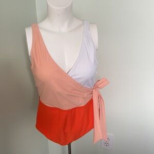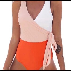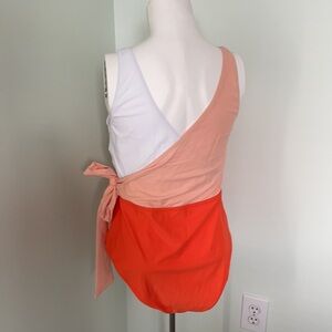 Cupshe Orange White Colorblock BowKnot Swimsuit Size Large NEW