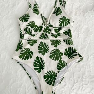 Cupshe Palm Leaf One Piece Plunging V-Neck with Peekaboo Back Size Large Excellent condition - no visible defects.
