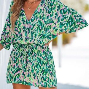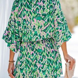 Cupshe Pink and Green Vibrant Print Romper Size Large