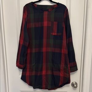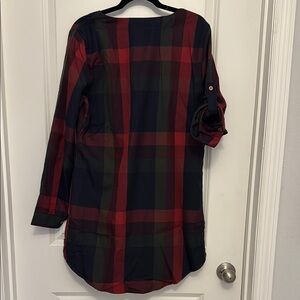Chic long sleeve dress with a bold plaid design. Features a classic red and green pattern. NWOT