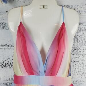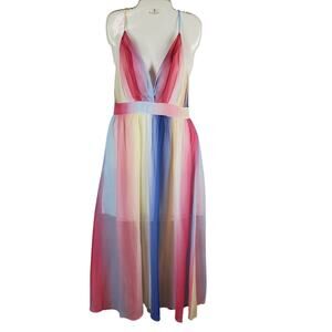 Cupshe Rainbow Maxi Plunge Dress Sz M Fairycore NWT Whimsical Festival Vacation