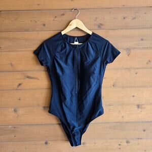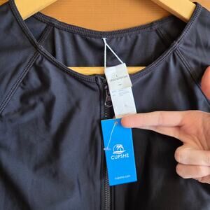 Cupshe Rashguard Short Sleeve Zip Front One Piece Swimsuit Large NWT Black Swim