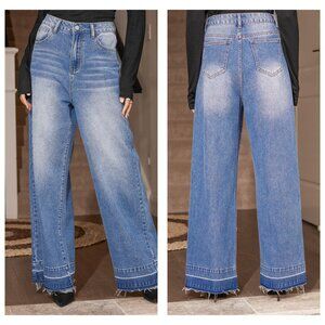 Cupshe Raw-Cut Flare Jeans | Light Wash Denim | Size L | NWT