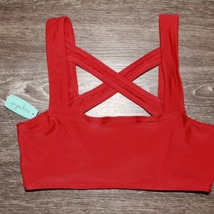 Perfect condition, bold red, two piece bikini! Bottoms have solid coverage and cover the little tum. NWT, never worn. Size S