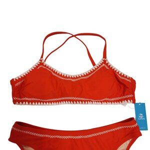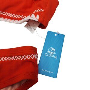Cupshe Red Crochet Trim Bikini Set Cross Back Straps High-Waisted Womens SZ L