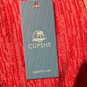 Dive into style with this vibrant red one-piece swimsuit from Cupshe, featuring a chic halter neckline and a unique textured fabric that adds a touch of elegance. Perfect for making a splash at the beach or lounging poolside.