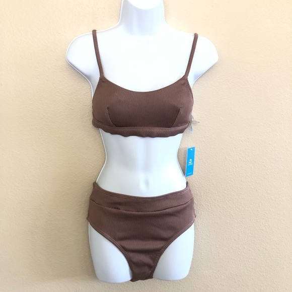 Cupshe Ribbed Texturized Scoop Neck Bralette High Waisted Bikini Swim Set Size S