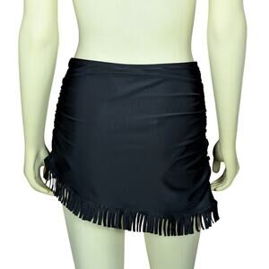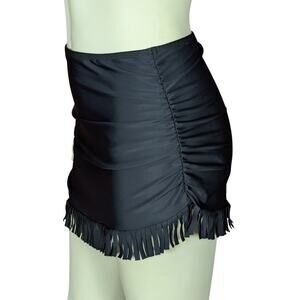 Cupshe Ruched Tummy Control Fringe Hem Swim Skirt Womens M Black Beachy Retro