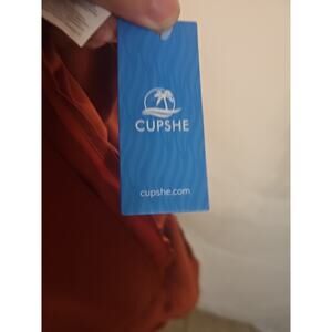 Cupshe halter mini dress in a rich rust color – size Medium. Features a chic crossover halter neckline, open back design, and a flowy mini-length hem. The lightweight fabric and earthy tone make it ideal for sunny days or relaxed evening events.