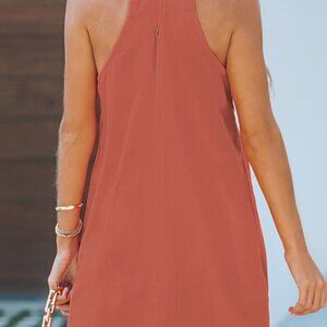 Halter Dress, Rust Color, Earth Tone, Boho, Minimalist, Summer Dress, Vacation Ready, Sleeveless, Resortwear, Casual Chic, Festival Look, Beachwear, Cupshe