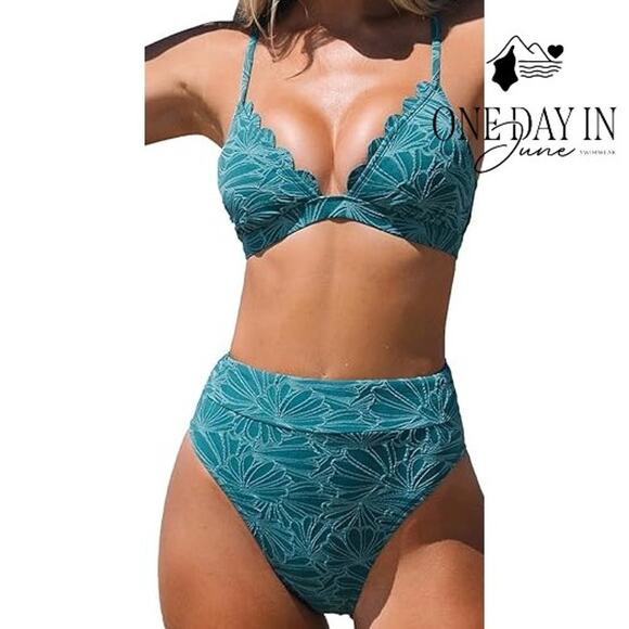 Cupshe Scallop Textured High Waist Bikini Swimsuit Size S