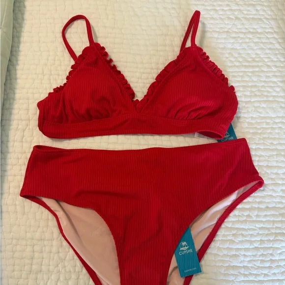 Cupshe Scarlet Ribbed Ruffle Triangle Bikini