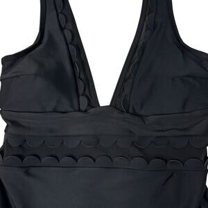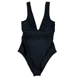 Cupshe Small Swimsuit One-Piece V-Neck Scalloped Accent Mesh Padded Lined Black