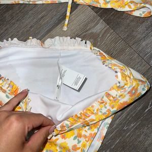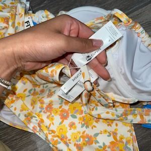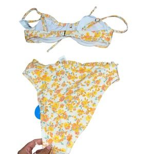 Cupshe Small Yellow Floral High Waisted Swim Suit Small