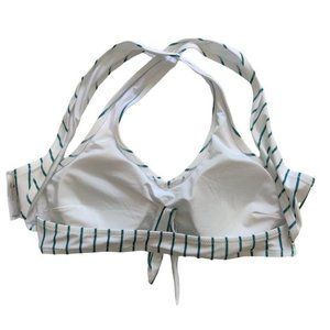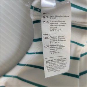 Cupshe white and green striped swimsuit top; 80% nylon, 20% spandex shell; 90% polyester, 10% spandex lining. Size L. Pre-owned; in good condition (from my personal collection). Ref: O-192 #004, 220906.