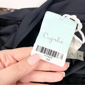 Cupshe Summer Seaside Ruched Halter Tummy Control Black One Piece Swimsuit sz S