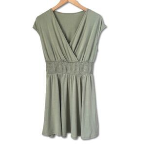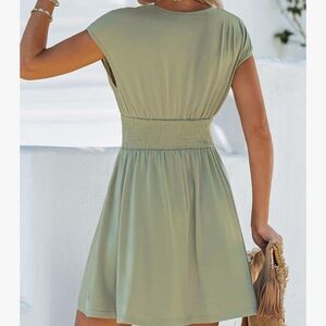 Cupshe Surplice Smocked Waist Mini Dress Olive Green Boho Dress