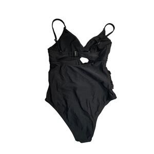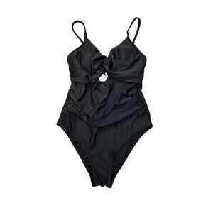 Cupshe Swimsuit Womens Medium Timeless Black Ruched One Piece with Front Cut out