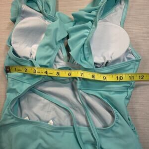 Cupshe Swimsuit Womens Small Aqua Blue Ruffle Wide Strap Tie Closure One Piece