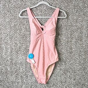 Cupshe Swimsuit Women’s Small Pink Leopard Textured Twist Back One Piece NWT