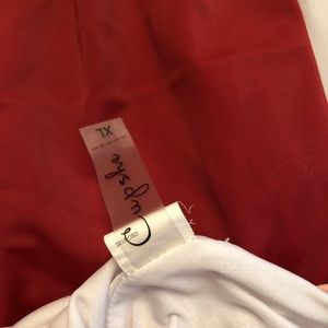 This listing includes two Cupshe brand swimsuits. They’re halter style. One is a rust color and the other is a light pink-coral with stripes. They fit pretty true to size. Size XL. They’ve been worn a few times, but still look brand new.