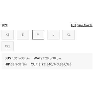 Extremely flattering fit with adjustable straps. Removable padding present for both cups. This item is new without tags. Never worn. Size medium. Please see last photo for fit. Sanitary liner has been removed.
