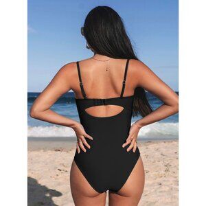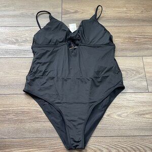 Cupshe Timeless Black Ruched One-Piece Swimsuit Womens Size XL Cut Out Front NEW