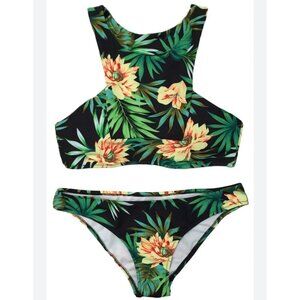 Cupshe Tropical Floral Bikini Set Size XXL Two Piece Racerback High Cut Bottoms