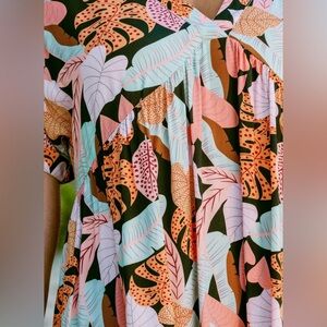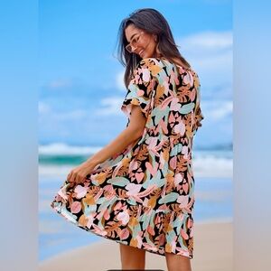 Cupshe Tropical Leaf Short Sleeve Flounce Hem Mini Sun Dress Womens Medium NWT