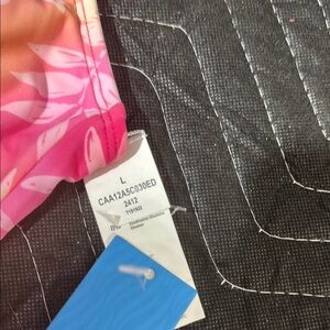 Bright pink and yellow bikini with floral design. Ideal for beach outings.