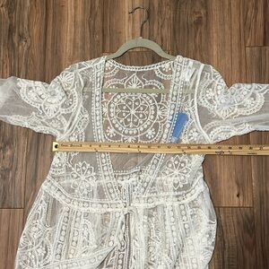 Cupshe White Embroidered Lace Kimono Cover-Up Boho Western Size Small NWT