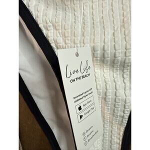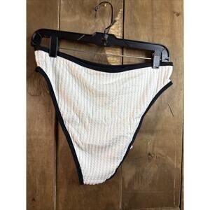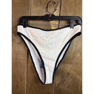 Cupshe White W/Black Trim High Waisted Bikini Bottoms, Large