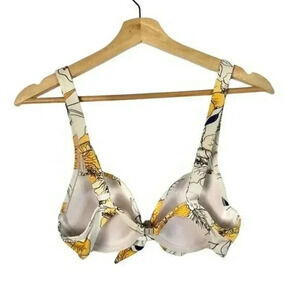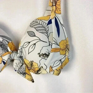 Cupshe White & Yellow Floral Tie Front Push Up Swim Top XS