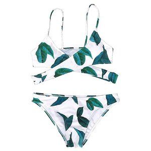 Cupshe White and Green Fresh Leaves Printing Cross Bikini size S