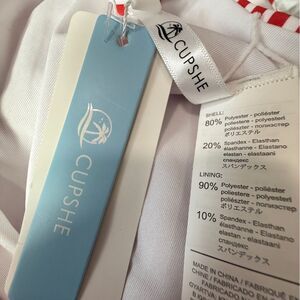 NWT Cupshe White & Red Striped Bikini, White Sports Knotted Top, Red & White Striped Bottoms, Size Large, No flaws (LL)
