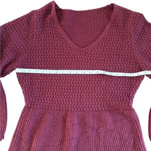 Elegant wine-colored dress with long sleeves. Soft knit material. Perfect for any occasion. Fits like a Large.