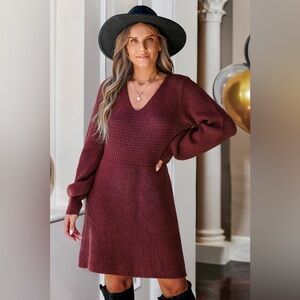 Cupshe Wine Long Sleeve Knit Dress
