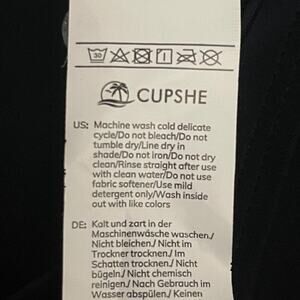Stay stylish and confident in this Cupshe women’s one-piece swimsuit in size large. Designed in classic black, it features a high neck with chic cutout details, a crisscross strappy back, and flattering tummy control ruching. Soft cups provide light support, while the stretch blend fabric ensures comfort and durability. Perfect for beach days, poolside lounging, or vacation wear, this timeless swimsuit combines fashion and function for a sleek, flattering fit.
