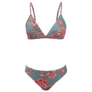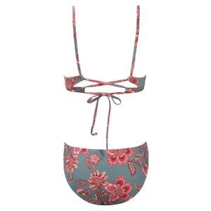Cupshe Women Floral Bikini Small Gray Red Two-Piece V-Neck Crossback Tie Cheeky