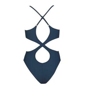 Cupshe Women One-Piece Swimsuit Medium Blue V-Neck Cutout Crossback Strappy
