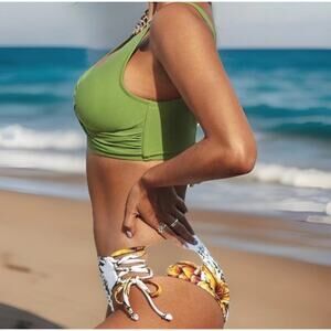 bikini set, two-piece swimsuit, beachwear, floral print, lace up, front cross, V-neck bikini, olive green bikini, Cupshe swimwear, summer outfit, beach fashion, women's swimwear, stylish swimwear