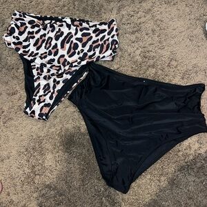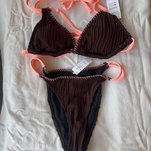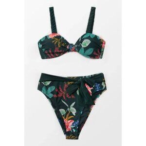 Cupshe Women’s 2PC Bikini Swimsuit Small Orange Top Floral Bottoms Swimwear