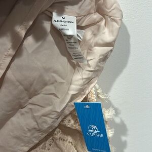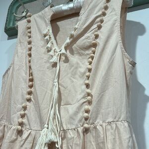 Cupshe Women's Beige Sleeveless Pom-Pom & Tassel Mini Beach Dress medium new