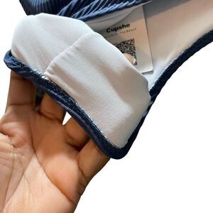 Cupshe Bikini Bottom Womens XL Blue Ribbed Low Cut Basic Beach Swim Surf Vacay