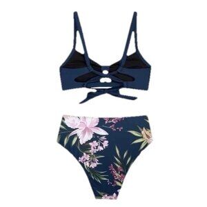 Cupshe Women’s Bikini Set Medium Blue Floral High Waist Two Piece Swimsuit Suit