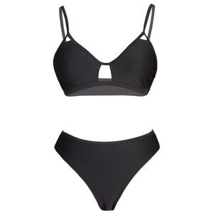 Cupshe Women’s Bikini XS Black Ribbed Cutout Top High Leg Cheeky Swim Set